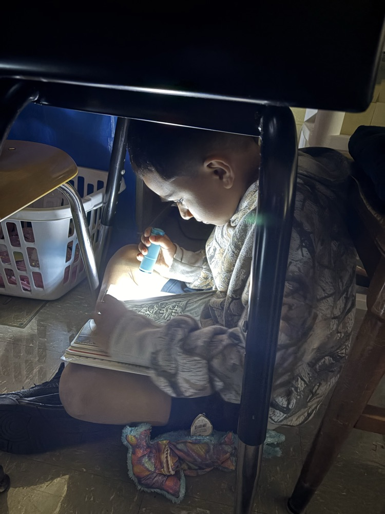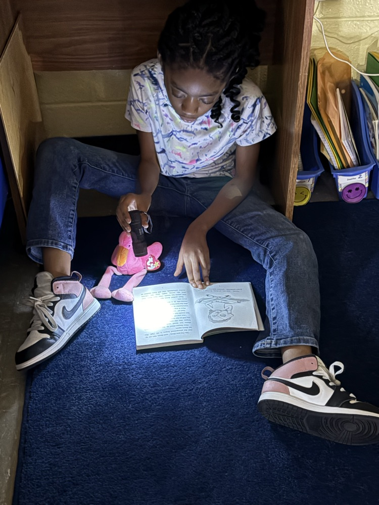 Flashlight Friday in Mrs. Blair's class. The students loved finding their special spot and reading with a flashlight. #truenorthbrunswick